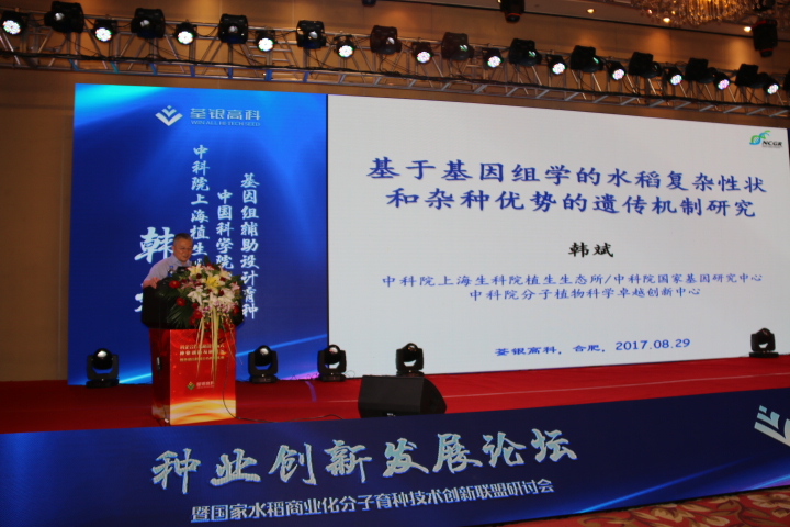 創(chuàng)新驅(qū)動,助力發(fā)展。2 9日下午,荃銀高科舉行種業(yè)創(chuàng)新發(fā)展論壇暨國家水稻商業(yè)化分子育種技術(shù)創(chuàng)新聯(lián)盟研討會,中國科學(xué)院院士、中科院上海植生生態(tài)所所長韓斌,北京市農(nóng)林科學(xué)院玉米研究中心主任趙久然分別就“基因組輔助設(shè)計(jì)育種”和“玉米科研及產(chǎn)業(yè)發(fā)展方向”作了報(bào)告。荃銀高科副總經(jīng)理張從合進(jìn)行了“荃銀高科15周年科研成果及產(chǎn)業(yè)發(fā)展”情況匯報(bào)。