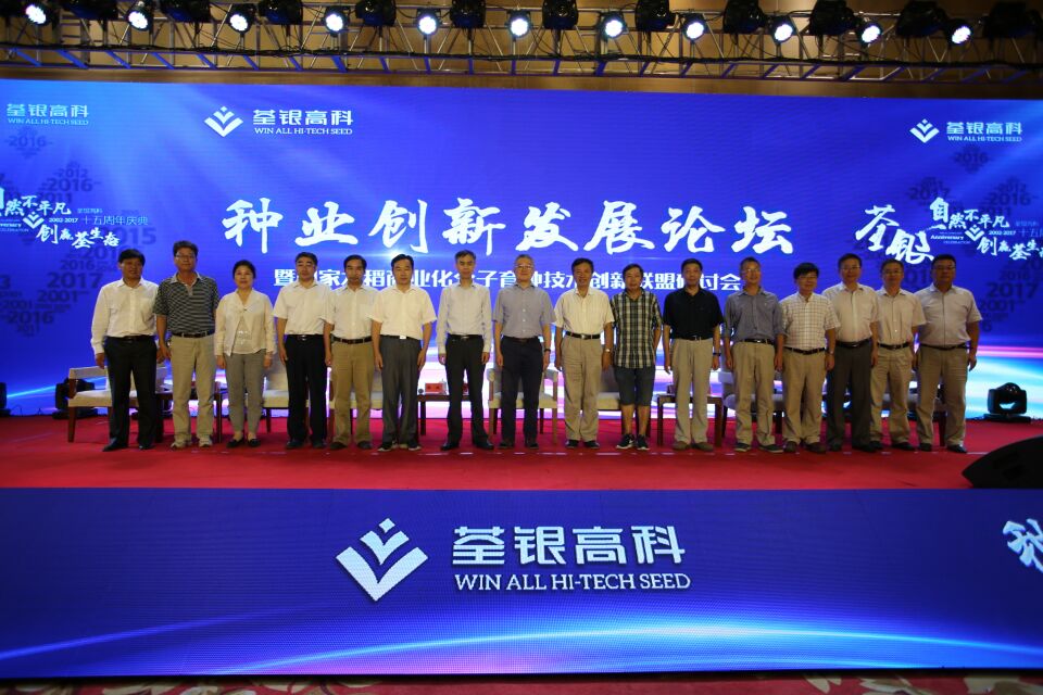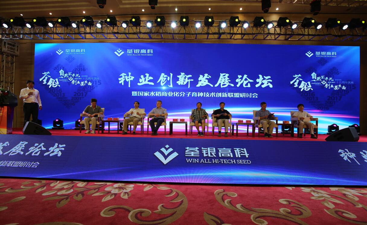 十五載風(fēng)雨兼程,十五載春華秋實(shí)!2017年8月29日,科企合作戰(zhàn)略簽約儀式·種業(yè)創(chuàng)新發(fā)展論壇暨荃銀高科成立15周年慶典大會在合肥隆重舉行。農(nóng)業(yè)部種子局局長張延秋,農(nóng)業(yè)部科教司司長廖西元,中國科學(xué)院院士、國家基因研究中心主任、上海植生生態(tài)所所長韓斌,中國種子協(xié)會副會長兼秘書長蔣協(xié)新,安徽省科技廳廳長宛曉春,安徽省農(nóng)業(yè)委員會副主任周世其、朱永東,“中國種業(yè)十大功勛人物”、荃銀高科創(chuàng)始人、安徽張海銀基金會理事長張海銀先生,以及來自農(nóng)業(yè)部、中國種子協(xié)會和省、市有關(guān)部門的領(lǐng)導(dǎo)、專家、嘉賓,國家水稻商業(yè)化分子育種技術(shù)創(chuàng)新聯(lián)盟的科學(xué)家,戰(zhàn)略合作簽協(xié)單位代表,種業(yè)界同仁,還有來自印度尼西亞、孟加拉、巴基斯坦、越南等國家的20多位外賓朋友,計(jì)500多人參加了此次活動。