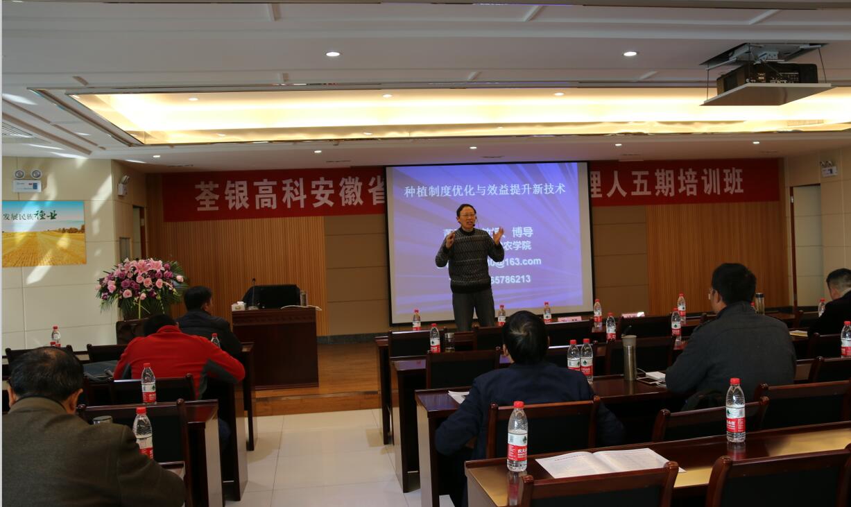 2017年11月27日,安徽省首屆農(nóng)業(yè)職業(yè)經(jīng)理人第五期培訓(xùn)班在荃銀高科六樓多功能廳正式開課。來自全省各地的50位從事糧油種植的家庭農(nóng)場主、農(nóng)業(yè)合作社及農(nóng)業(yè)企業(yè)負(fù)責(zé)人參加了培訓(xùn)。