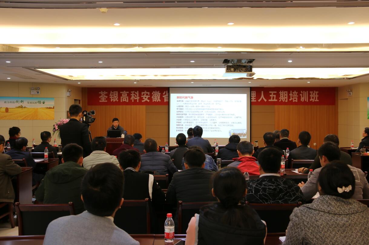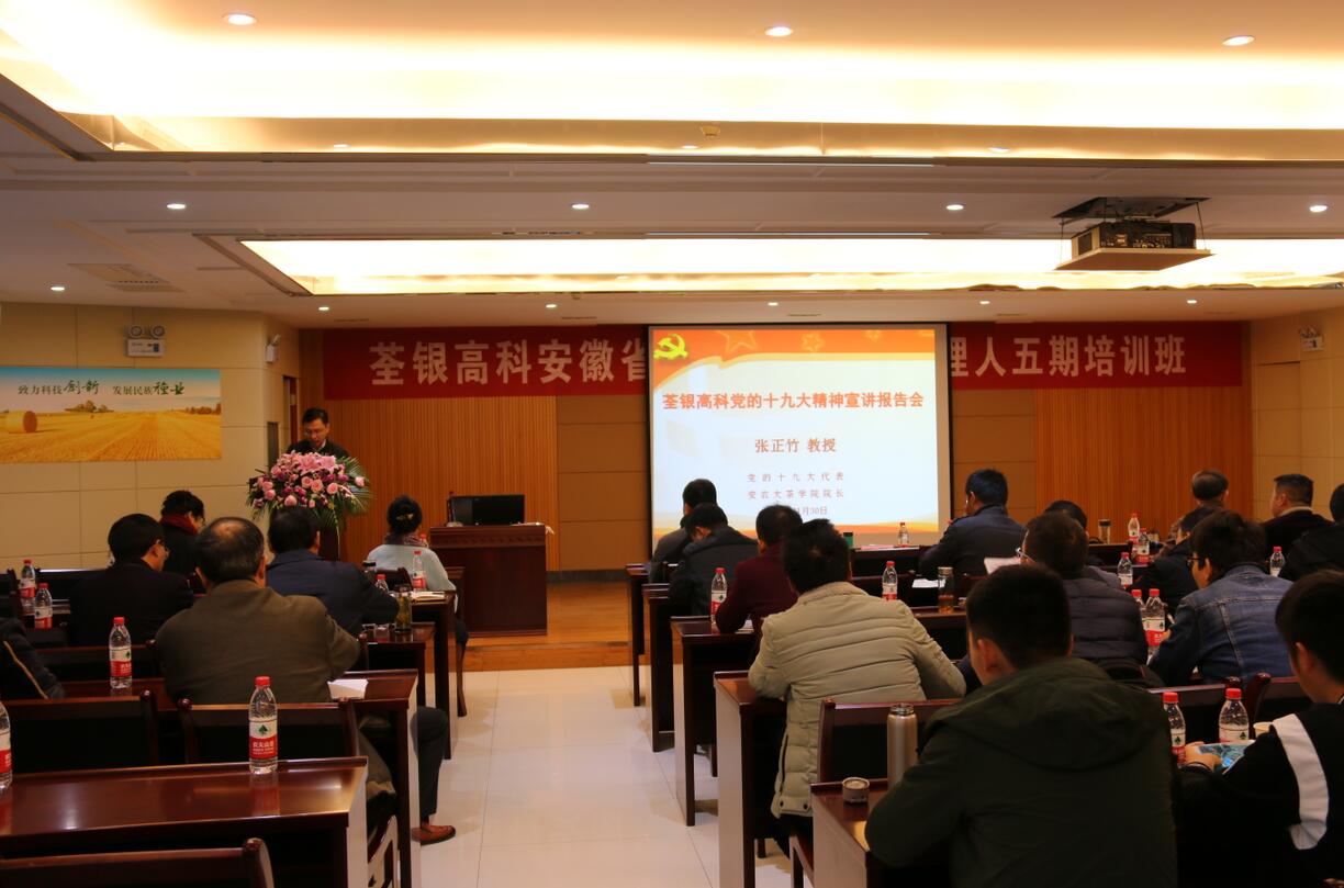 2017年11月30日上午,為深入學(xué)習(xí)宣傳中國共產(chǎn)黨第十九次全國代表大會(huì)精神,荃銀高科邀請(qǐng)黨的十九大代表、安徽農(nóng)業(yè)大學(xué)茶與食品科技學(xué)院院長張正竹教授來公司作黨的十九大精神宣講。宣講報(bào)告會(huì)在荃銀高科六樓多功能廳舉行,公司經(jīng)營班子成員、全體黨員、安徽省首屆農(nóng)業(yè)職業(yè)經(jīng)理人學(xué)員以及公司部分員工參加了學(xué)習(xí)。會(huì)議由公司黨支部書記廖孝波主持。