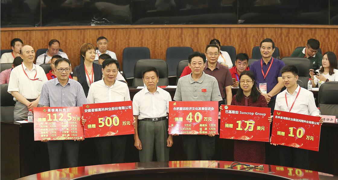 善人者,人亦敬之。張海銀種業(yè)基金會五年來的公益慈善活動得到社會各界愛心人士和愛心單位600余次的的慷慨捐贈,累計950多萬元。會上還進行了基金會2018年公益愛心捐贈儀式。荃銀高科母子公司高管和員工多次參與基金會濟困助學公益慈善活動,本次捐贈112.5萬元;吉林鴻翔種業(yè)集團鴻翔種業(yè)有限公司捐贈10萬元;巴基斯坦Suncrop Group(陽光作物集團)捐贈1萬美元;合肥霍邱經濟文化發(fā)展促進會及會員為基金會貧困助學項目捐贈40萬元;安徽荃銀高科種業(yè)股份有限公司捐贈500萬元。基金會將按捐贈人捐贈的意愿和在業(yè)務范圍內開展公益項目和慈善活動。