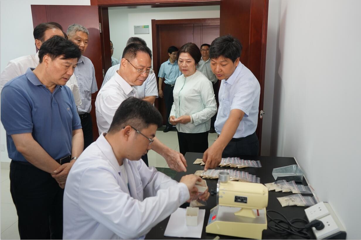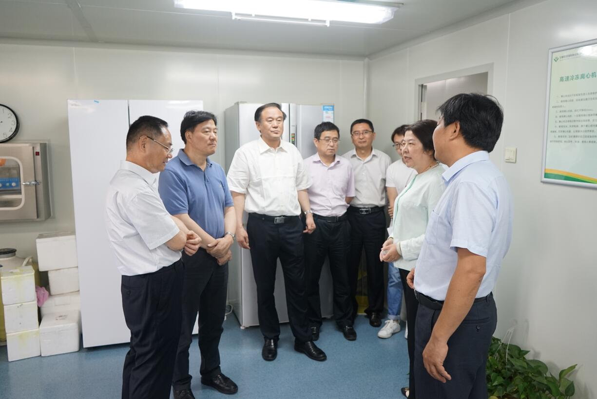 ??? 2019年6月18日上午,上海市政協(xié)常委、市政協(xié)農(nóng)業(yè)和農(nóng)村委員會主任邵林,上海市政協(xié)常委、農(nóng)業(yè)和農(nóng)村委員會常務(wù)副主任、市農(nóng)科院黨委書記、院長蔡有銘,市政協(xié)常委、市商務(wù)委原副主任、市糧食局原局長、黨組書記盞國平,市農(nóng)業(yè)和農(nóng)村委員會副主任王國忠等領(lǐng)導(dǎo)一行蒞臨荃銀高科參觀考察。合肥市政協(xié)主席、黨組書記韓冰,安徽省政協(xié)農(nóng)業(yè)和農(nóng)村委員會專職副主任朱云、辦公室調(diào)研員蘇從江,市政協(xié)常委、市政協(xié)農(nóng)業(yè)和農(nóng)村委員會主任孫功兵等領(lǐng)導(dǎo)陪同考察。荃銀高科副董事長兼總經(jīng)理張琴、副總經(jīng)理兼首席技術(shù)官張從合等熱情接待了考察團(tuán)一行。