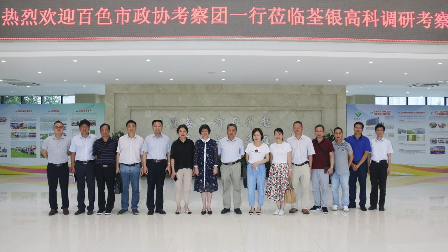 ??? 2019年7月8日下午,廣西壯族自治區(qū)百色市政協(xié)副主席蔡文姬率考察團(tuán)一行蒞臨荃銀高科調(diào)研考察。合肥市政協(xié)人資環(huán)委主任張立、市農(nóng)業(yè)農(nóng)村局副局長(zhǎng)李軍、高新區(qū)農(nóng)村工作局副局長(zhǎng)江水等領(lǐng)導(dǎo)陪同調(diào)研。荃銀高科副董事長(zhǎng)兼總經(jīng)理張琴、副總經(jīng)理兼首席技術(shù)官?gòu)垙暮?、?cái)務(wù)總監(jiān)張慶一等領(lǐng)導(dǎo)熱情接待了考察團(tuán)一行。