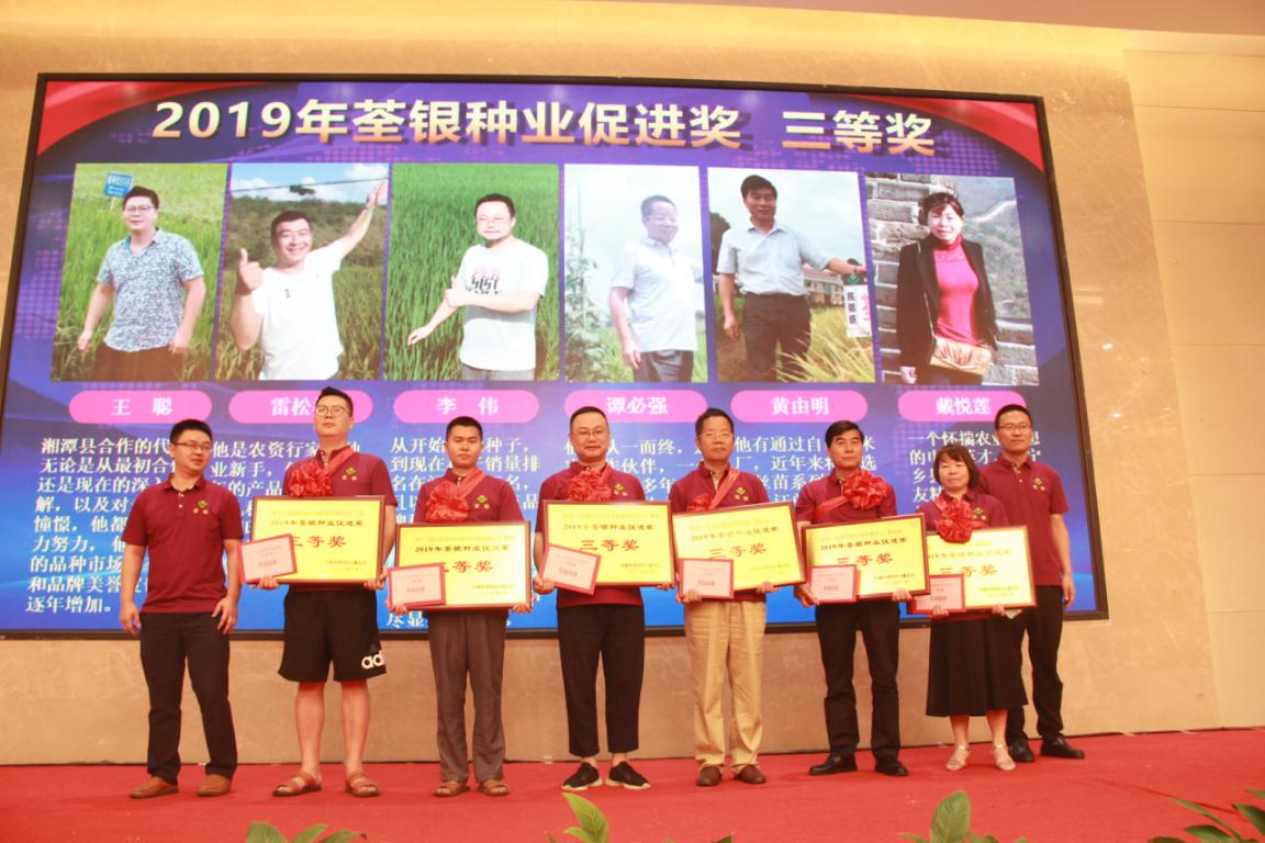 ?? ?隨后,張海銀種業(yè)基金會鄭滿生監(jiān)事宣讀了張海銀種業(yè)基金會“荃銀種業(yè)促進獎”2019年頒獎決定文件。大會向38名在優(yōu)質(zhì)水稻推廣和良種服務等方面取得優(yōu)異成績的個人頒發(fā)了“荃銀種業(yè)促進獎”專項獎。