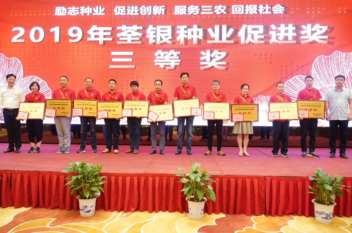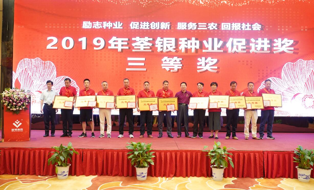 ??? 守初心擔(dān)使命,荃銀人深知企業(yè)的發(fā)展離不開社會(huì)的支持。會(huì)上,安徽張海銀種業(yè)基金會(huì)監(jiān)事鄭滿生先生宣讀“荃銀種業(yè)促進(jìn)獎(jiǎng)”頒獎(jiǎng)文件,大會(huì)向35名在優(yōu)質(zhì)水稻推廣和良種服務(wù)等方面取得優(yōu)異成績的代表頒發(fā)了“荃銀種業(yè)促進(jìn)獎(jiǎng)”專項(xiàng)獎(jiǎng)。