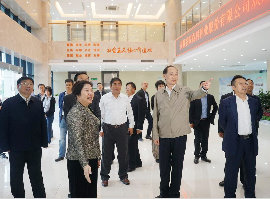 ??? 2019年10月11日下午,農(nóng)業(yè)農(nóng)村部黨組副書(shū)記、副部長(zhǎng)余欣榮蒞臨荃銀高科考察調(diào)研,農(nóng)業(yè)農(nóng)村部鄉(xiāng)村產(chǎn)業(yè)發(fā)展司司長(zhǎng)曾衍德、辦公廳副主任寧啟文參加調(diào)研。安徽省政府副秘書(shū)長(zhǎng)張冬云,省農(nóng)業(yè)農(nóng)村廳黨組成員、副廳長(zhǎng)王華,合肥市副市長(zhǎng)王民生等領(lǐng)導(dǎo)陪同考察。荃銀高科副董事長(zhǎng)、總經(jīng)理張琴,常務(wù)副總經(jīng)理王玉林,副總經(jīng)理、首席技術(shù)官?gòu)垙暮希笨偨?jīng)理朱全貴、江三橋等熱情接待了余欣榮副部長(zhǎng)一行。